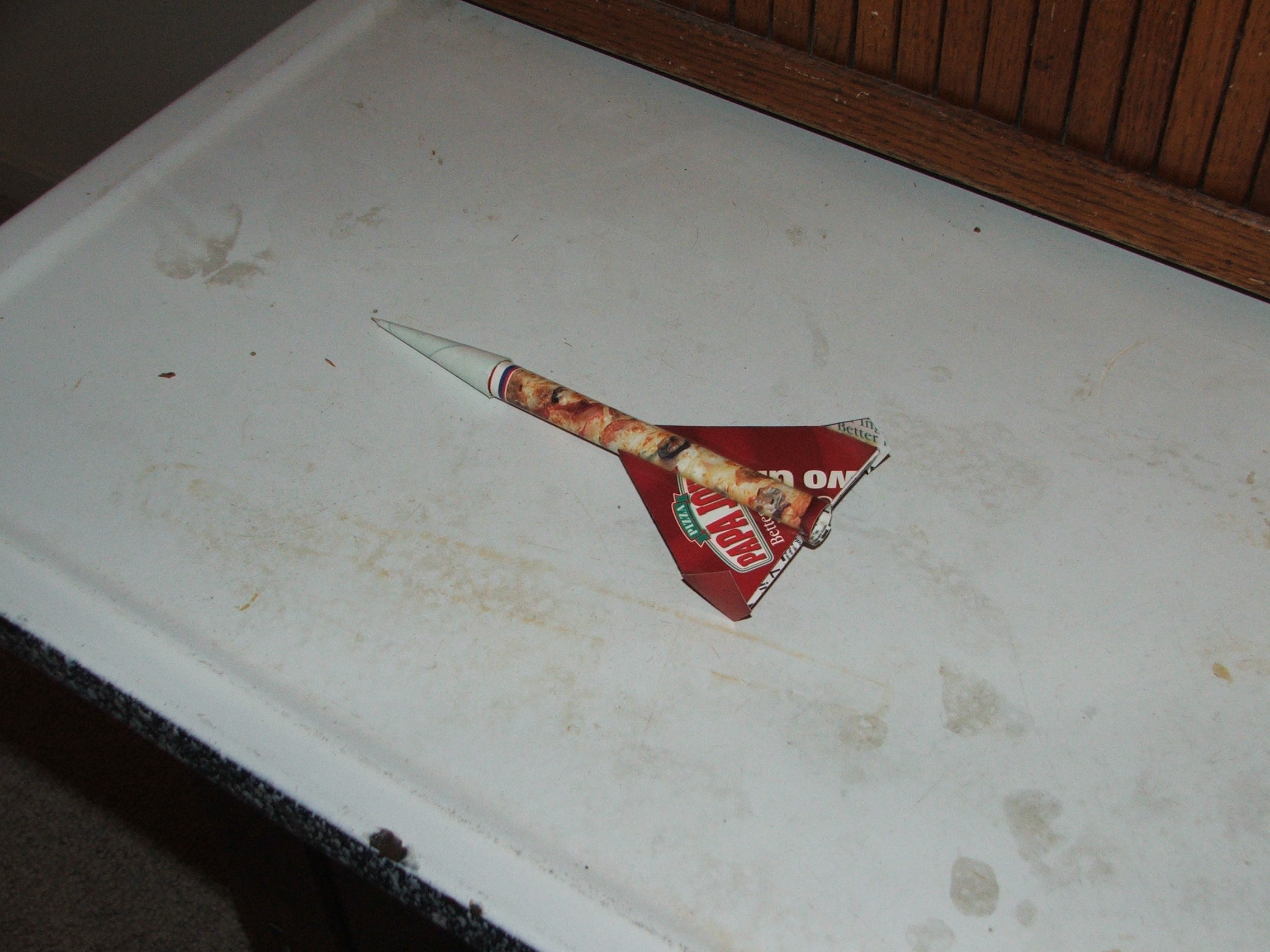 Fast flight. Ejection charge snapped the Kevlar. Nose cone drifted off to who knows where. Flight looked great up until ejection. So much for my career as a paper rocket designer.