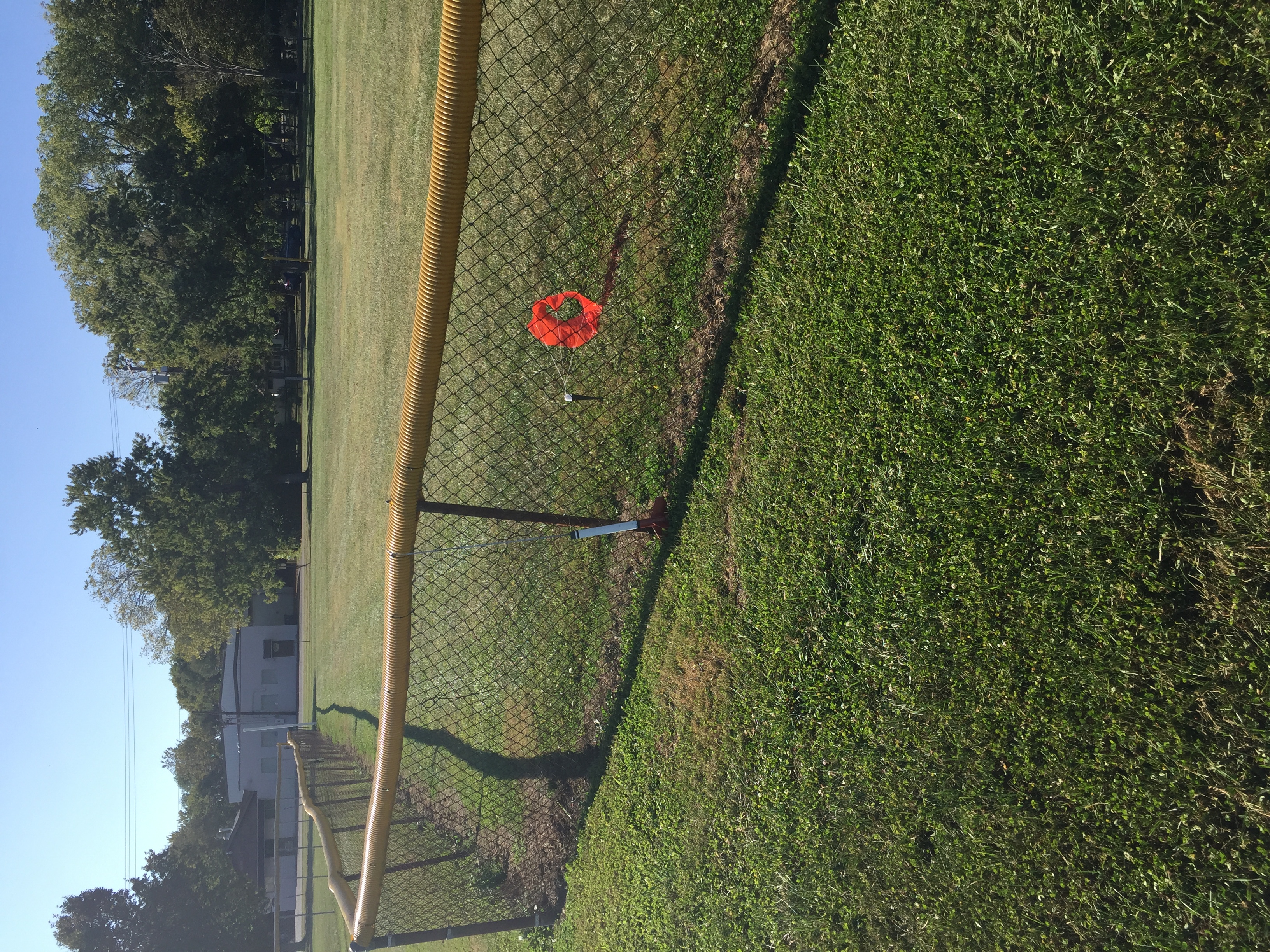 One of my oldest clones, dating back to 2001, this was the first flight since being refurbished with new paint and Excelsior decals. Great flight, topping out around 1000' and ejecting a bit past apogee. Almost landed between the two baseball fields, but just caught the outfield fence and draped over it.