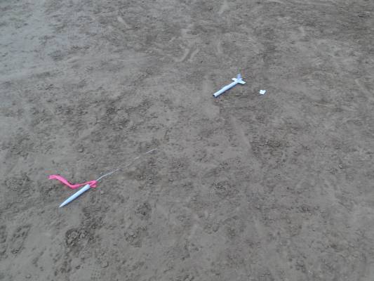 Great flight in the gathering darkness. Supposed to be the final flight of the night, but I flew another one for the audience on the hill. This one landed on the infield and broke a fin.