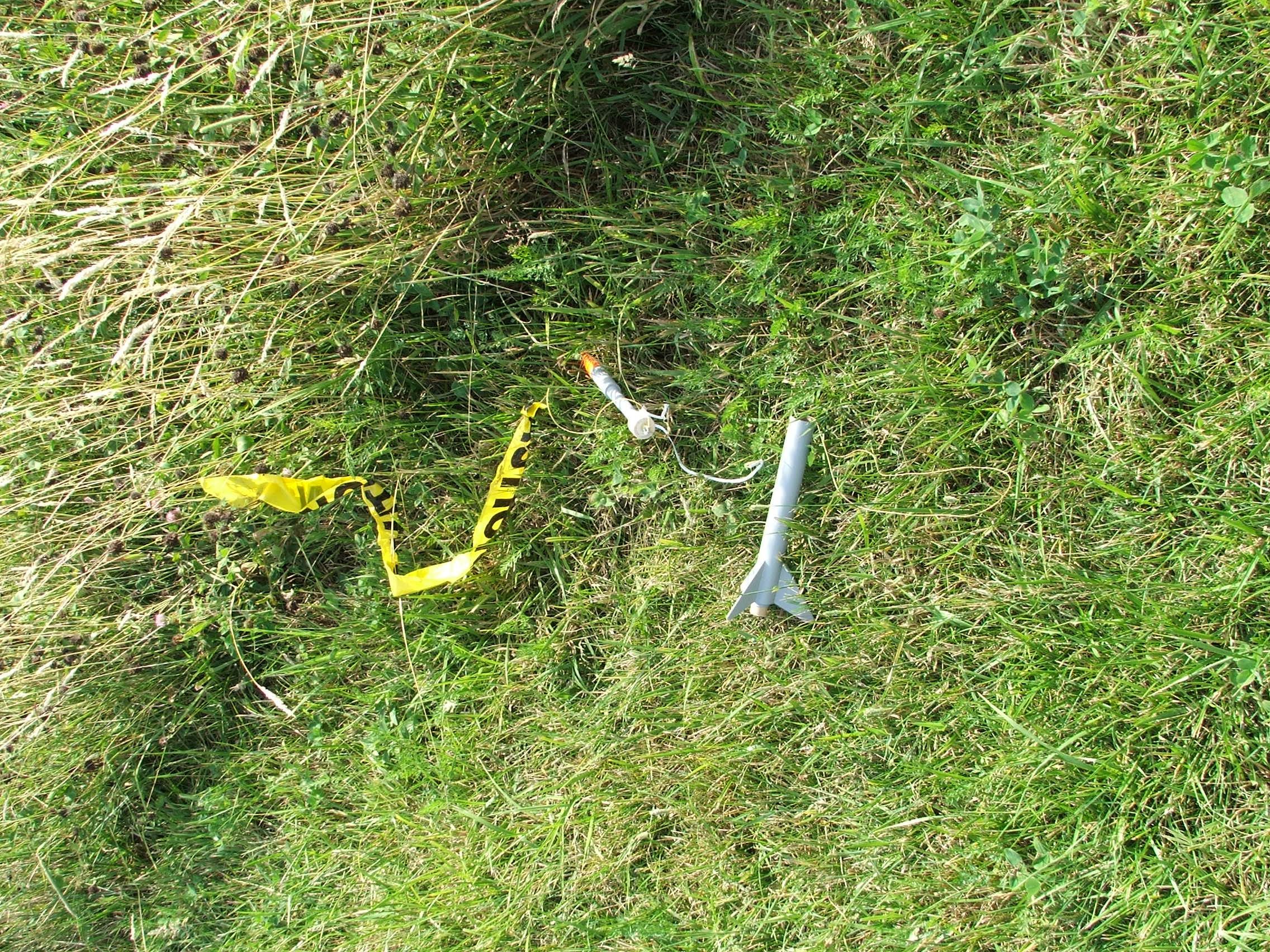 Overenthusiastic ejection charge caused fin and payload tube damage.Fixable and I plan to add more elastic.