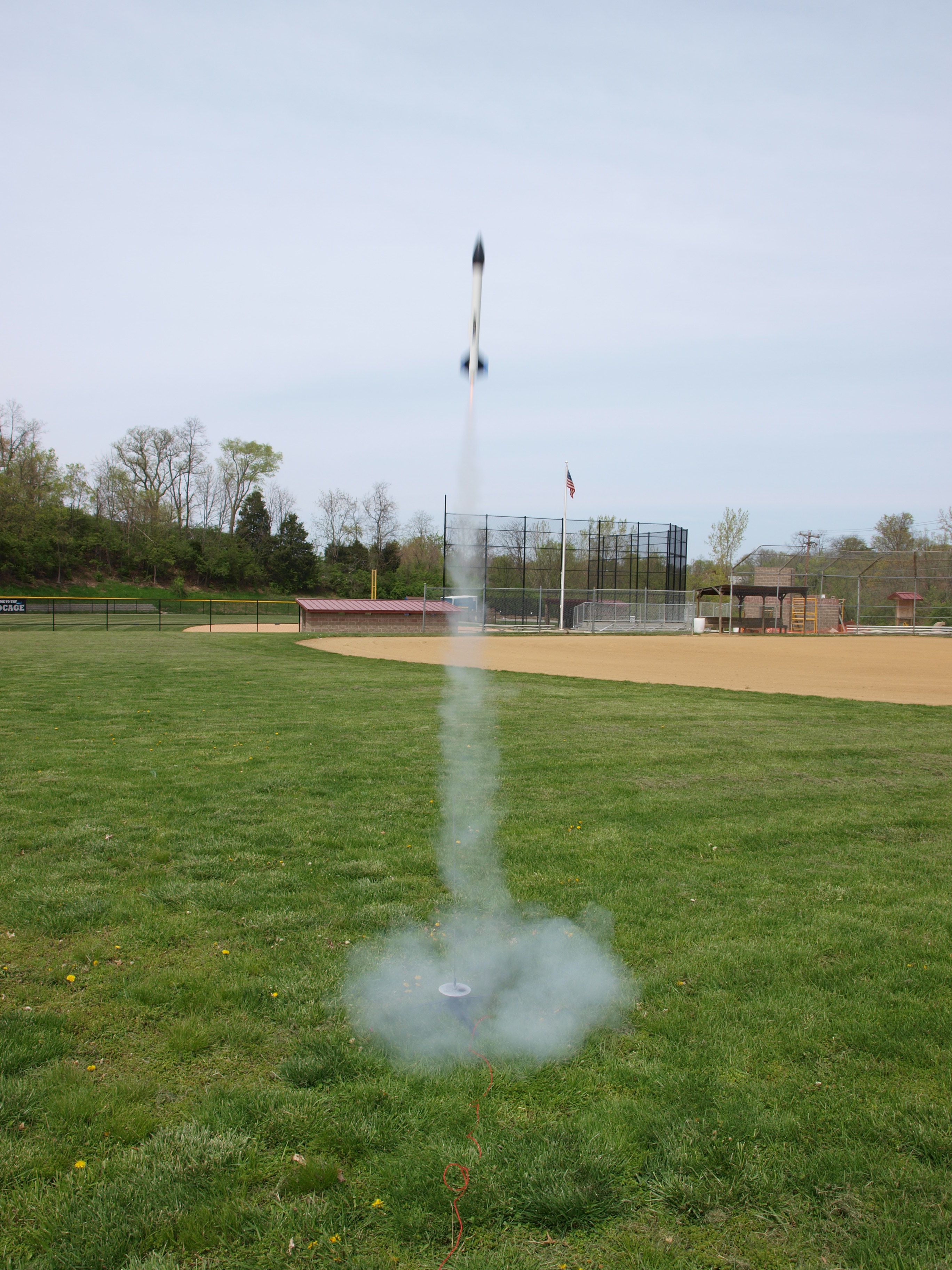 First flight since paint and decals. Looks great on the pad. B6-4 gives a nice ride on this field. Straight up flight with a drift near the trees on recovery.