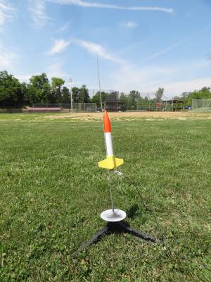 Shortened Quest Brighthawk. Flew like a scalded dog, then drifted forever despite the 12" parachute. Cleared the trees and looked like it was going to threaten the cars in the lot across the street, but plunked down in the turn lane of US 27 instead. Four cars passed it without hitting it. Ft. Thomas people are nothing if not courteous.