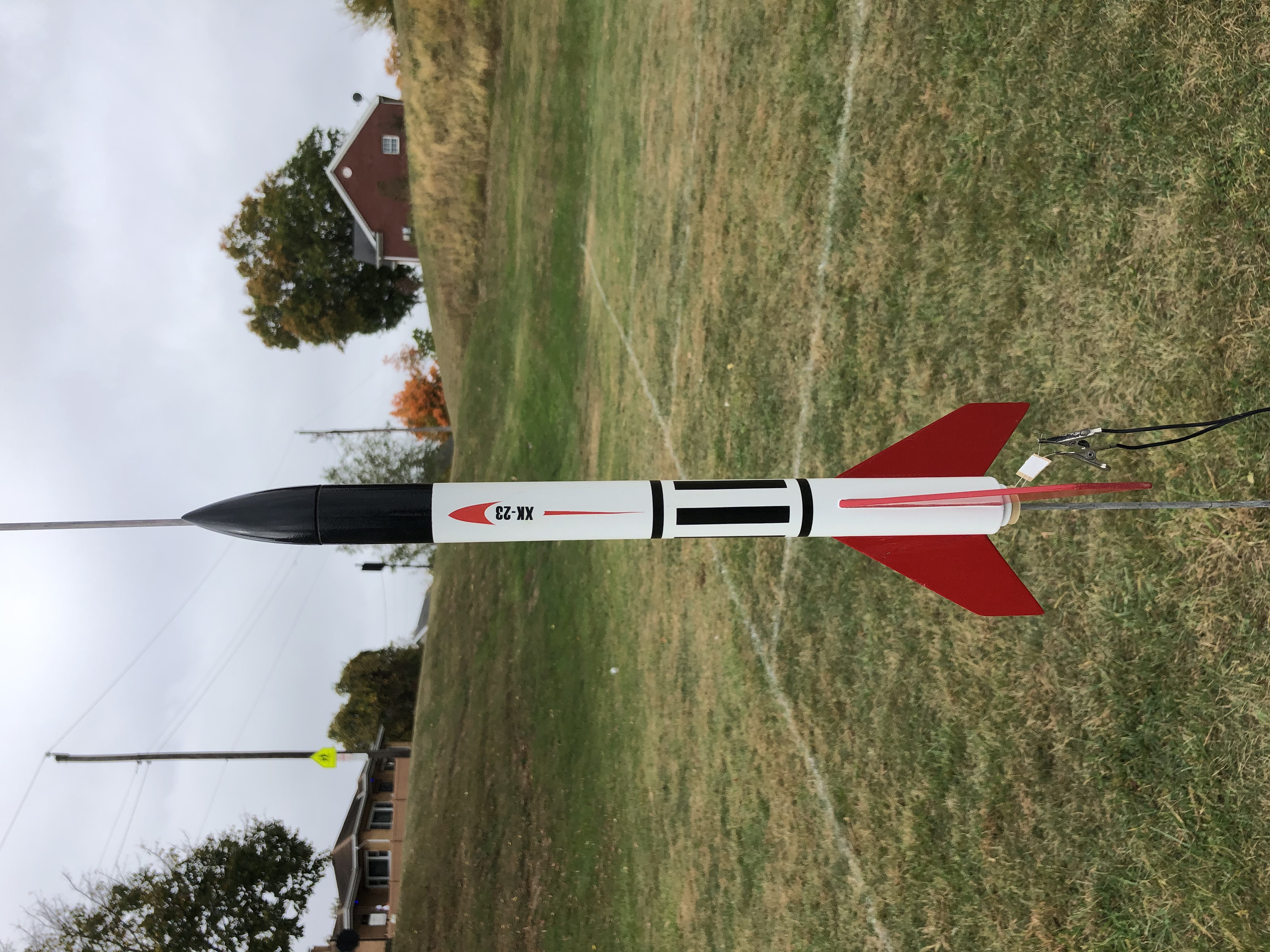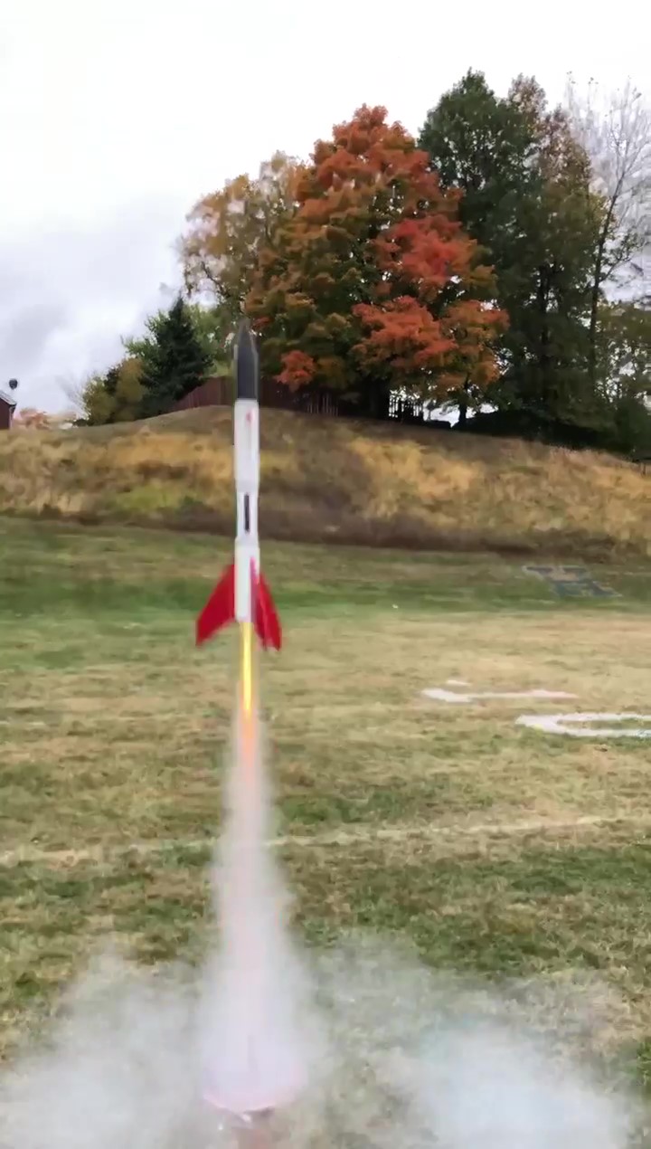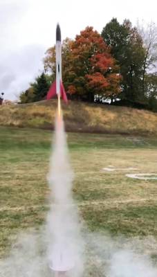 Took quite a while, but finally got off the pad.  Flight was nicely stable and arced toward the corner of the field away from the pad.  Re-broke the newly repaired fin on recovery.