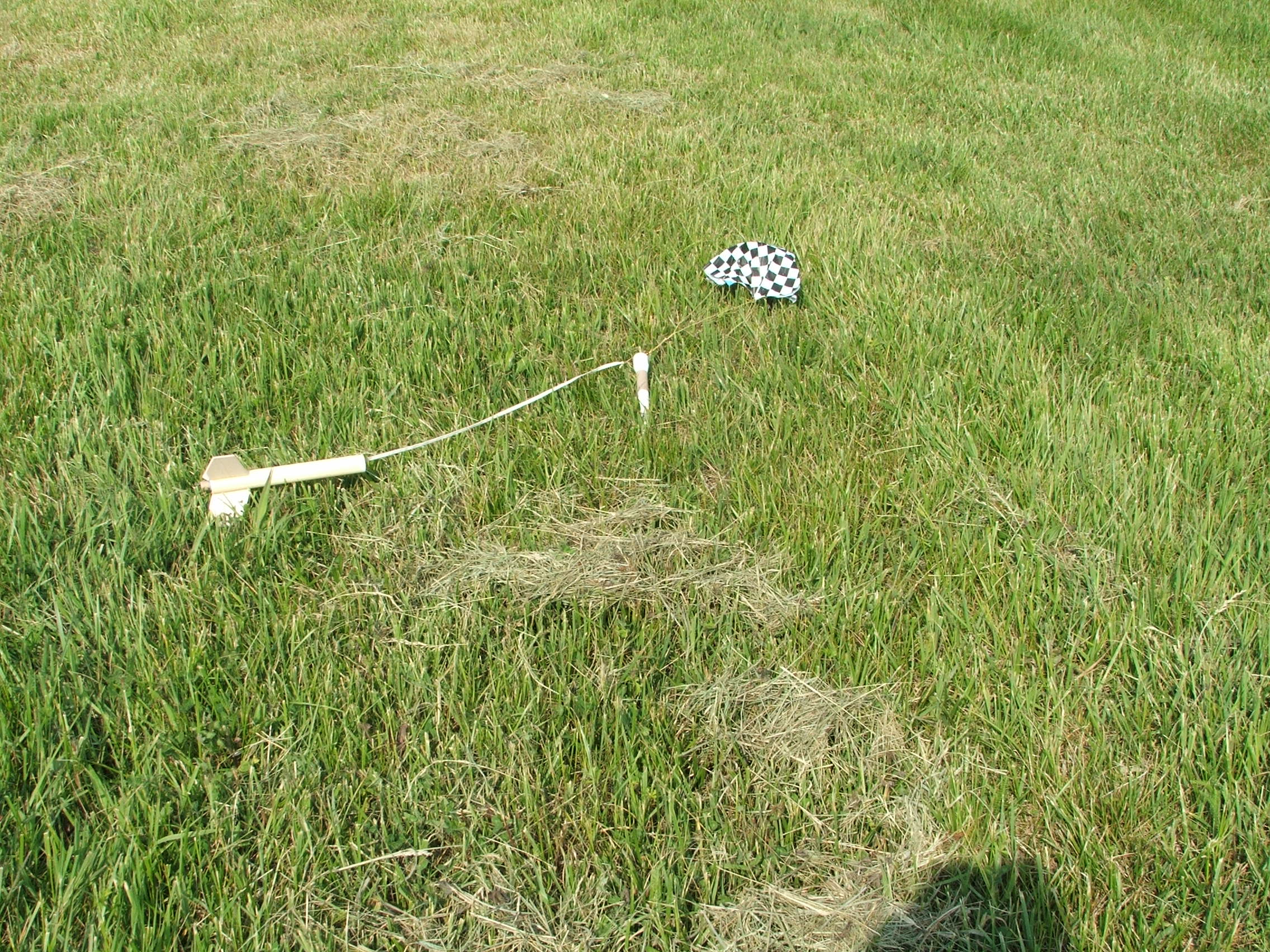 Wiggled off the pad, but a pretty decent flight into the wind.Recovered about 20 yards from the pad.