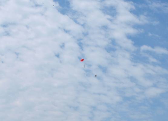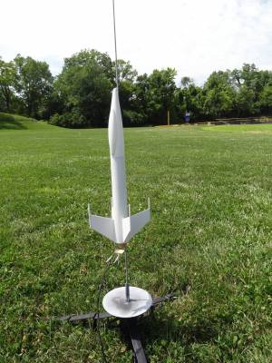 I was down to my last B6-4 and wanted to use it for the Bullpup that was up next, so this one got an A8-3 flight. Another one of those "I can throw it that high" flights. Shock cord tangled in the fin dowels, but recovered on the infield without damage.