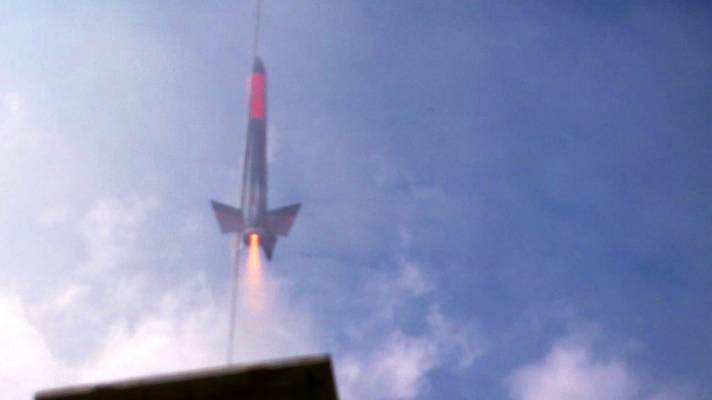 This high-performance rocket can handle gusty winds because it launches very fast and it's added length and noseweight helps keep it stable with it's small, thin fins. Also, having bad luck with parachutes today I was releived to be flying a bird with streamer recovery.