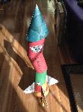 Custom mod of ACME Spitfire for Break-away action. Fun build! Each section of the rocket "Breaks Apart" and is attached to a Kevlar line. I've also made it so that the launch rod fits right through the middle of the rocket rather than outside launch lugs/standoffs.
