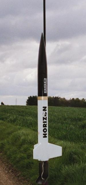 spray paint. After a couple of iterations of sanding and priming I was ready for the gloss coats. The Horizon only uses two colors (white and black) and these are both in separate sections (white on the motor tube and black on the payload section and nosecone) so painting was very easy. Decals came last and as always with BSD kits were easy to apply and looked great afterwards.