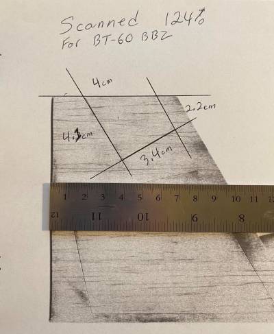 These are the fins for the BT-60 Blue Bird Zero - They will be 1/8" balsa/bass wood and papered with Reynolds Freezer Paper.