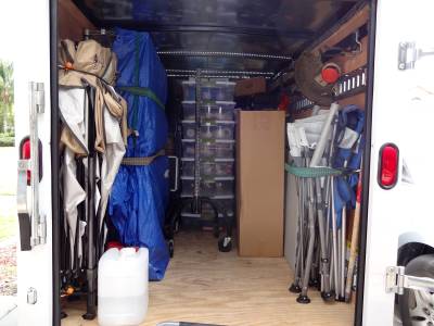 Once we could park it in the garage, our attention turned to the inside of the trailer. How would we organize things in the trailer so that we can find what we need and ensure that things don't get damaged in transit?