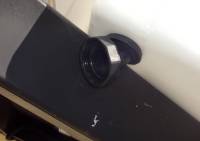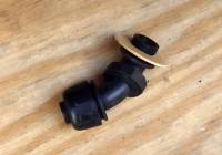 From McMaster-Carr, I bought a short length of PVC conduit and a couple of conduit connectors to use to connect the tongue box to the inside of the trailer. The floor of the trailer is pretty thick, so the connector would fit, so I used a piece of wood that looks, suspiciously, like a centering ring. I coated the wood with epoxy to weather proof it. Then I drilled a hole in the floor of the trailer. I glued the connector into the hole then added a few screws for good measure.