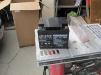 So, I decided to build a battery-powered system. I started by purchasing the parts – a tongue box, battery, inverter, charger, and stuff to connect it all together. I bought a white plastic tongue box. It was less expensive than the metal boxes. For the battery, I chose a Universal Power Group UB12500 sealed lead acid battery. It is rated at 50 AH. To keep it charged, I purchased a BatteryMINDer "Battery Charger/Maintainer, Desulfator, Conditioner." The charger is designed to keep batteries like the UB12500 charged and functioning. The inverter is from Roadpro. It's rated at 1500 Watts which means I can add a second battery to the system if I later find that it is needed. To connect it all together I bought a giant fuse to put between the battery and inverter; a couple of switches to allow me to connect and disconnect the charger and inverter; a couple of fused 12V jacks; and wires.