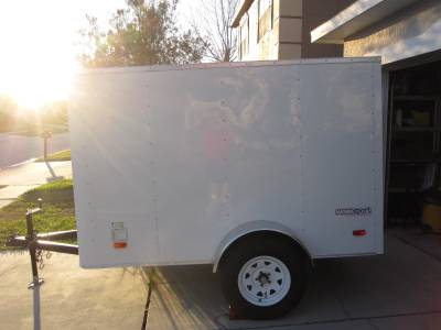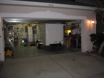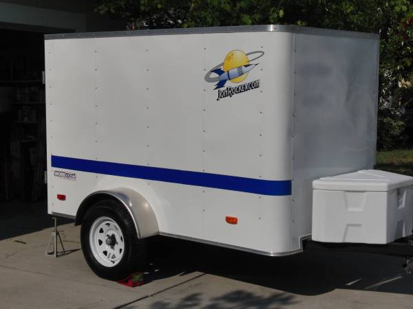 So, for the past few years, we've been looking for a small trailer we could use to store and transport our rocketry stuff. One of the challenges is that the trailer had to be small enough to fit into our garage, but large enough to be useful. We considered a 4x8 enclosed cargo trailer. A small trailer like that would fit easily in the garage, but we were concerned that it would be difficult to organize things in it. We wanted to be able to put things like tents, tables, and chairs in the back of the trailer so they could be unloaded first and loaded last. A larger 5x8 trailer seemed better suited to our needs. In addition to being a foot longer, a 5x8 trailer is a foot taller. In addition to giving us much more space inside the trailer, the extra height would make it easier to get into the trailer. I did some research and found that most 5x8 enclosed trailers are 71" tall. I measured the opening to our garage at 73" - a close fit.