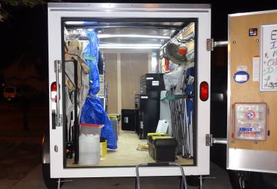 Trying to get things more organized, we put two upright tool chests into the trailer. We were able to take most of the stuff we had in six storage boxes and four small toolboxes and put it in the two new tool chests.
