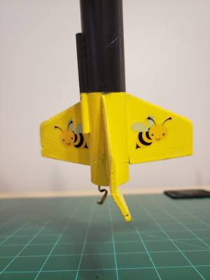 Bumblebee's secrets include a unique offset motor mount and a single fin designed with the perfect trim tab to sustain the spin until the ejection charge fires.