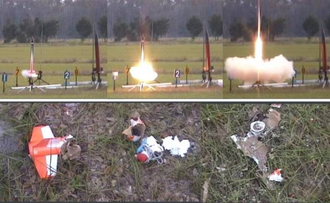 Great launch with a Flash at liftoff. Post Mortum showed excessive lube prevented the delay of igniting the Black Powder ejection charge.