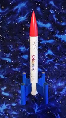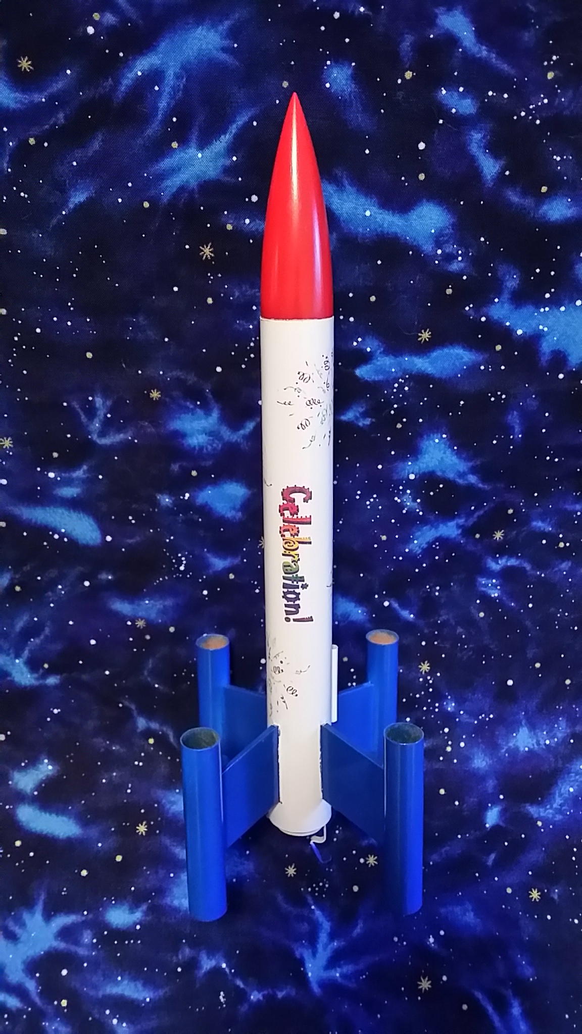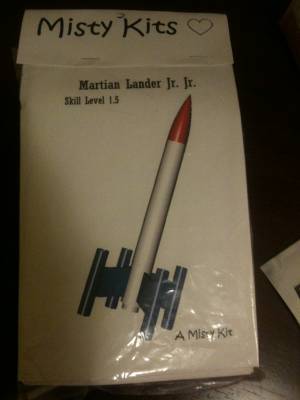 Jesse custom made this kit for me, based off the Mercury Lander Jr. It was challenging to paint the fins, but I think it turned out pretty cute.
