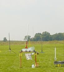 It took a while, including several crushing disappointments, but I finally managed to work in a day when I could get out to launch the Thunder Roc. Although I had built several new rockets in the two months that I wasn't flying, the Thunder Roc was first on the pad for me at VOA on what had turned out to be a perfect day to fly. With an almost total absence of wind, I decided to go with a D12-5 for the first flight. I had intended to use perma wadding on this rocket but got distracted when gluing in the motor mount and realized it too late. This was little more than a minor irritant and I loaded the rocket with a fairly heavy load of dog barf before I installed the nylon parachute. I had used the standard 3/16" Mean Machine launch lugs, but they turned out to be a tight fit on the 3/16" rod. I switched to a longer, but slimmer rod, but so much of the Thunder Roc's mass is above the launch lugs that it moves in even the slightest breeze. This turned out to be a big problem as several times the rocket shifted enough to cross the wires or even pull one of the clips off of the ignitors. I finally got it secured with the addition of a D engine carcass to act as an extra stand off. The rocket whipped somewhat as it left the pad, but straightened out quickly and flew majestically to a higher altitude than I had been lead to expect.