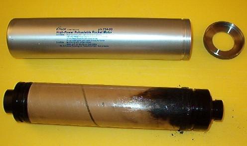 The motor is warm but not hot shortly after firing. There was absolutely no sign of wear on the casing and the disassembled reload had only minor scorching on the outside of the liner with no evidence of burn through anywhere.. The casing required only a run through with a paper towel to remove the silicone lubricant.