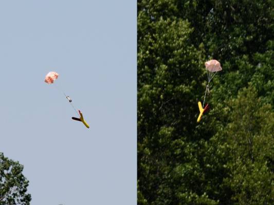 Straight, stable flight to a perfectly-timed ejection and clean deployment. Parachute got tangled after landing somehow and had to be cut off, but rocket was undamaged.