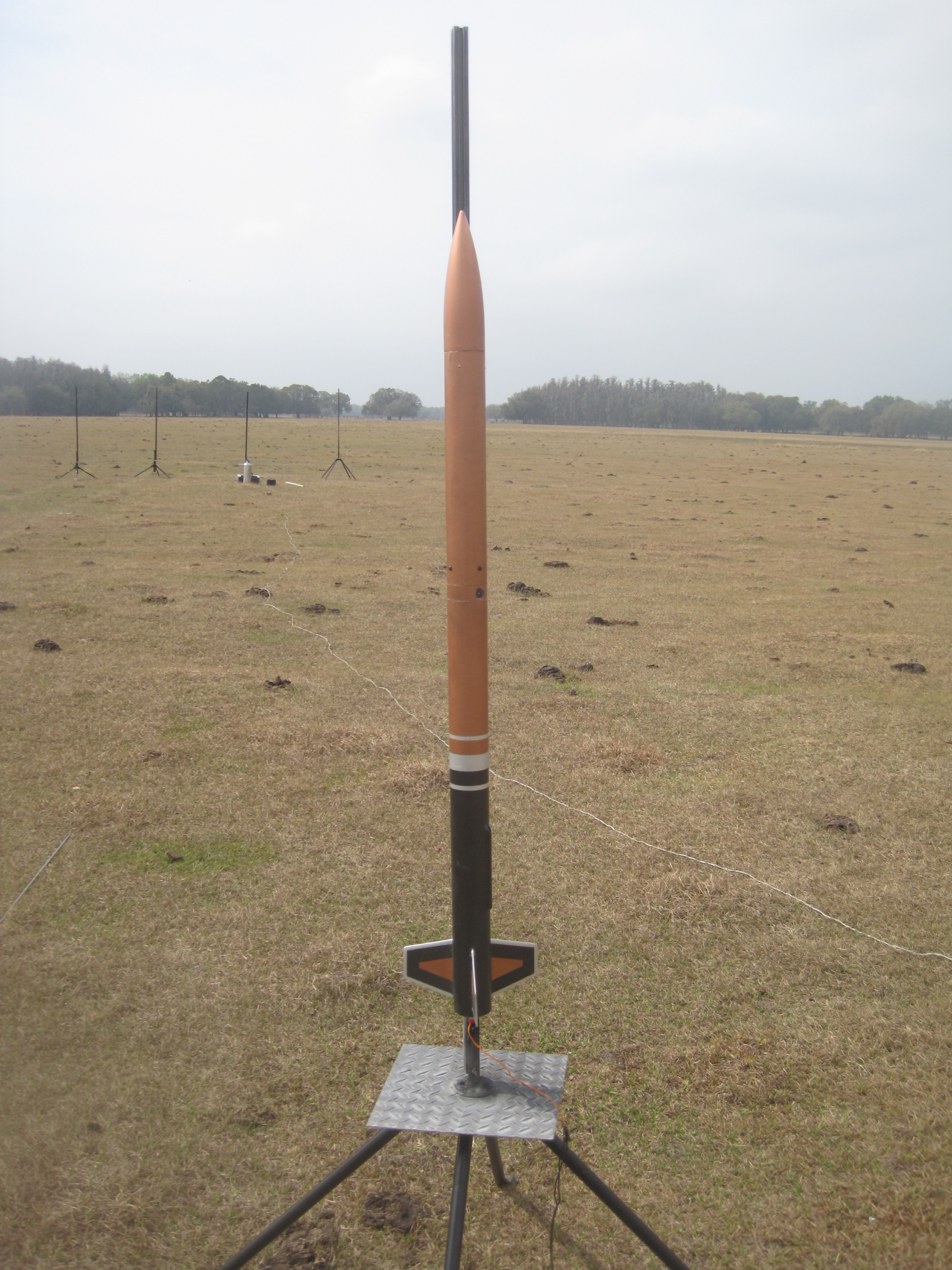 Unstable flight (coning). Need more ave thrust for this rocket! This hi-tech is rigged with dual deploy and weighed +/- 5.0 lb fully loaded.