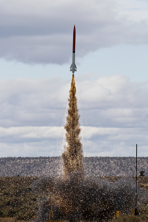 This was the third flight of this rocket.  The AT I327DM is a fun motor with lots of dark smoke and bright sparks. Gary G. took some really nice photos of the flight.