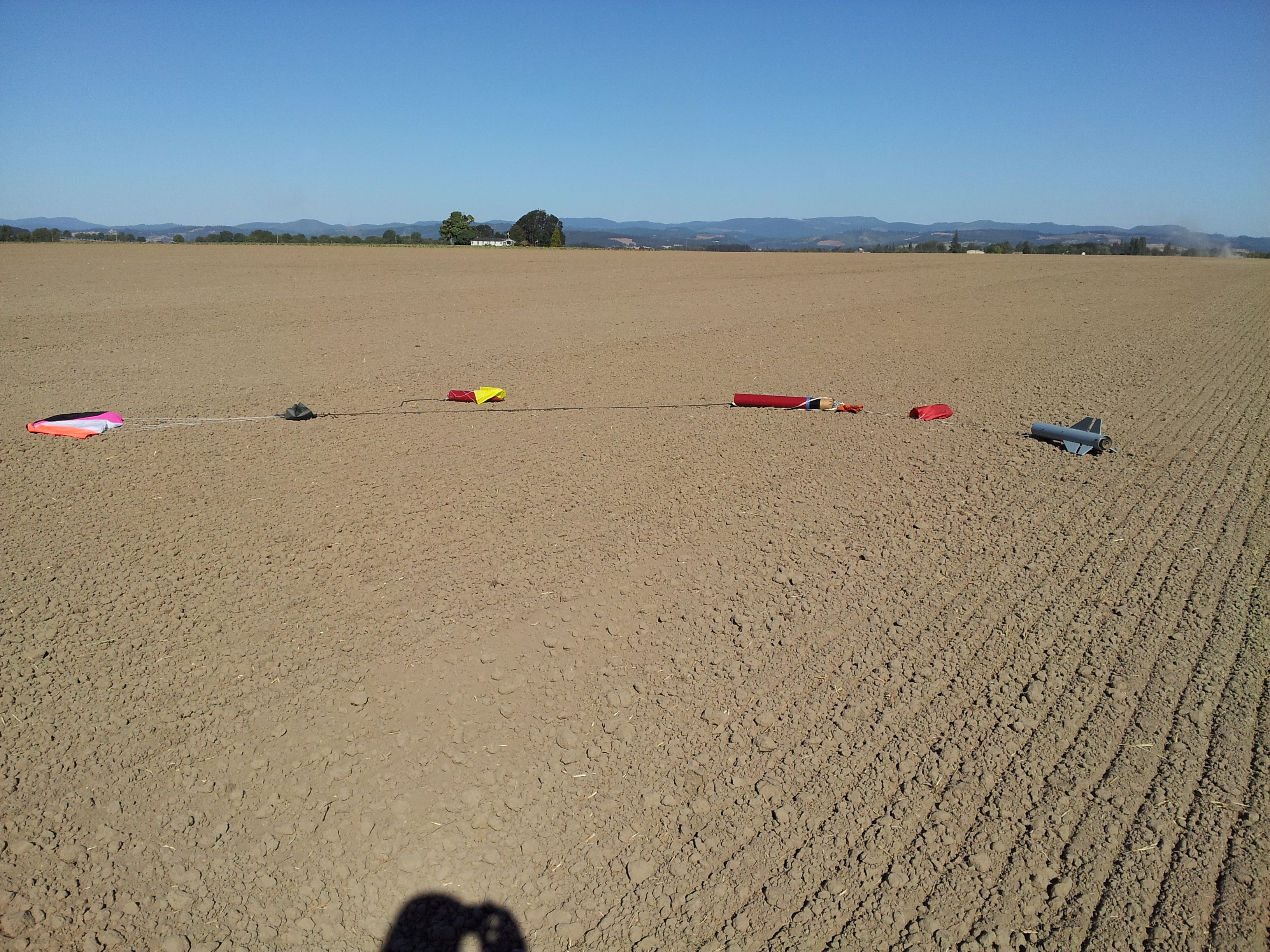 First flight of this rocket. Couldn't ask for a better boost and ascent. The droge depolyed late (maybe by the motor backup ejection) and main deployed perfectly. Need to figure out why the simulation altitude was so different from the actual.