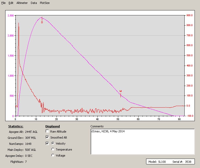 Nose cone pulled loose at apogee (too much BP?) but chute stayed stowed. Lost GPS track after apogee but had good visual. Chute deployed normally despite tangled harness.