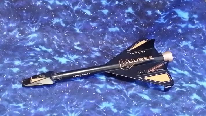 This rocket has an unusual nose cone and extra large wings. It also has missiles on the bottom. The missiles were a pain in the butt to paint! The metallic copper color did not want to stick to the plastic. Now that it's done, I think it looks great.