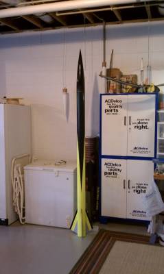 This rocket is built to fly on anything from a decent-sized J motor to a 75/6000 M. This rocket weighs 16 pounds with no motor, and the paint job is a custom design that I came up with. The rocket is recovered on a Top Flight 18" drogue and a SkyAngle Classic II 60" Main.