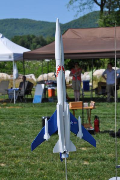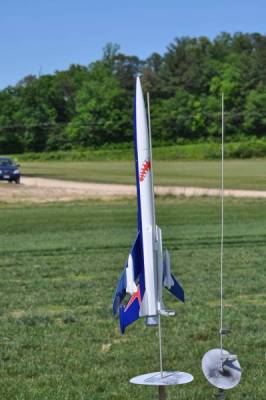 The maiden flight was launched with an Estes D12-3 per the recommendations. I equipped the rocket with an altimeter to check the altitude. The specs state that this rocket will weigh 5.5 ounces. Mine came in at 10.6 minus the engine but it had a baffle and 6' of shock cord as well as a crazy paint job. I reached 245' on the D12-3 but I will work my way up to the E30-4 and see if I get to 1100' which is claimed on the face card. The E30-4 is a recommended engine in the instructions but not on the face card. It did arc a bit in flight turning over as if the tail cone and vertical stab was the disturbing factor. Estes E9-4 yielded 508' on 7/26/14.