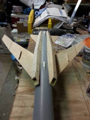 The Conquest is built except for the missiles and aft skirt which I will be finishing separately before final assembly. I've put some balsa into the missile pylon slots to protect the holes for gluing later.