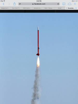Excellent flight with on-board video capture -- http://youtu.be/66H2wf6Npeg .  Straight and fast flight on an Aerotech single use H135 White Lightning motor.