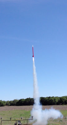 Nice ascent, but failed recovery. Windy day, used the wrong chute and it was stripped as the rocket cocked into the wind. This made for a fast landing, fortunately, the ground was rather soft after recent rains so damage was minimal.