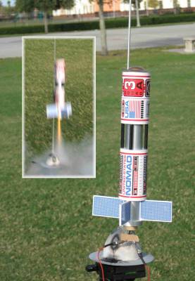 Lots of drag with the flat nose cone plate but still a respectable altitude. No damage on recovery under a 12" garbage bag parachute.
