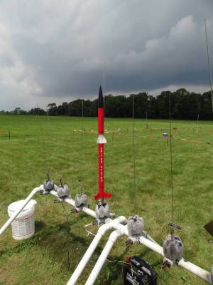 The Matra is a military "style" rocket that boasts a "scale-like design" and D-power. Construction was typical of "level 3" builds with balsa fins and paper tubes. This model has a small fin area about two inches from the nose cone. This small fin area connects the lower body tube and the very short upper body tube (see picture). Alignment of the three tube sections is critical for ...