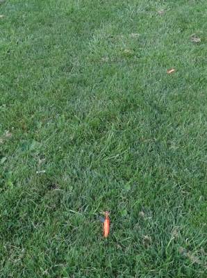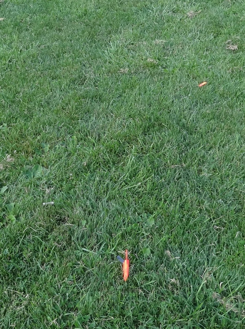 Saw the ejection charge and saw the motor land. The rocket and a fin landed within a few feet of the motor casing a second later.
