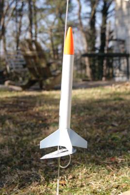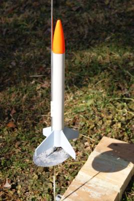 First Build: Used baby blue Krylon on fins, and danger Orange for nosecone under clear gloss. Did not have decals on rocket, but rushed the first flight on MLK day.