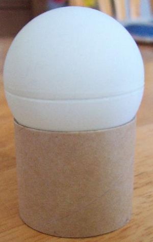 This is the first time I've used hot-glue or a ping pong ball when building a rocket. I ran into a snag as I wasn't satisfied with the alignment of the ball's center seam with the centering ring, and I attempted to move things around where they were still hot... Bad move. The ball distorted badly where the glue in contact with the ball was still hot. I replaced the ball and tried again. I had much better results this time. I had been concerned that the hot glue wouldn't provide a strong enough joint, but this experience eliminated that concern. Hot glue is very effective in this case.