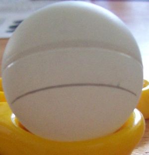 After marking the ball, I used a superfine Microbrush to apply Testors gloss black enamel inside the lines. I'd never used this technique before. It works very well with a steady hand, patience, and care.