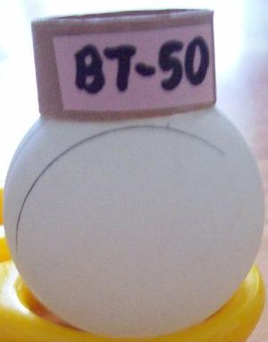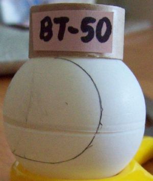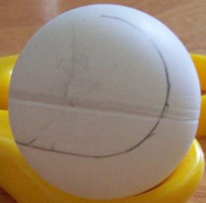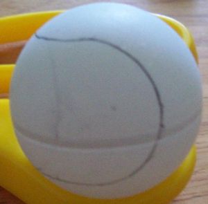 Painting the view plate on the ping pong ball was an interesting challenge. The instructions shows what this should look like. You are instructed to mark the shape with a pencil, but it doesn't tell how to get the shape onto the ball accurately. I used a couple of pieces of body tube to get something close, namely a piece of BT-55 and a piece of BT-50. I've included some pictures to give you a step-by-step.