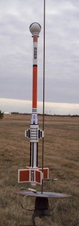 One thing the instructions to not address is that in order to get your model to look like the picture included with the kit, you need to paint the lower part of the upper tube orange. Using the kit's picture as a guide, I painted the lower 5" of the upper tube with Krylon pumpkin. Oddly enough, the color matched the orange of the decals perfectly.