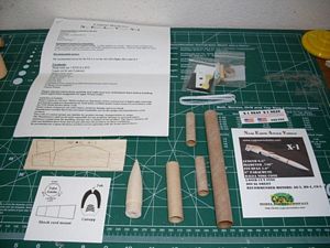rocket kit comes in a large plastic bag with a color cover sheet and instructions printed on 8.5" by 11"