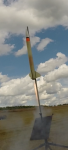 2013-04-13Rocketry Warehouse Broken Arrow XP  Flight Arching flight, ultimately landed 0.83 miles away. 54-2550 purple motor burned very well, nice color. Rocket recovered after minimal searching after asking permission to enter field on foot. Raven2 and MW RRC3 Beta performed perfectly. - EX K892 Purple - MDRA - Price, MD [More]