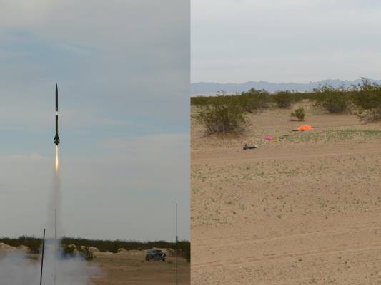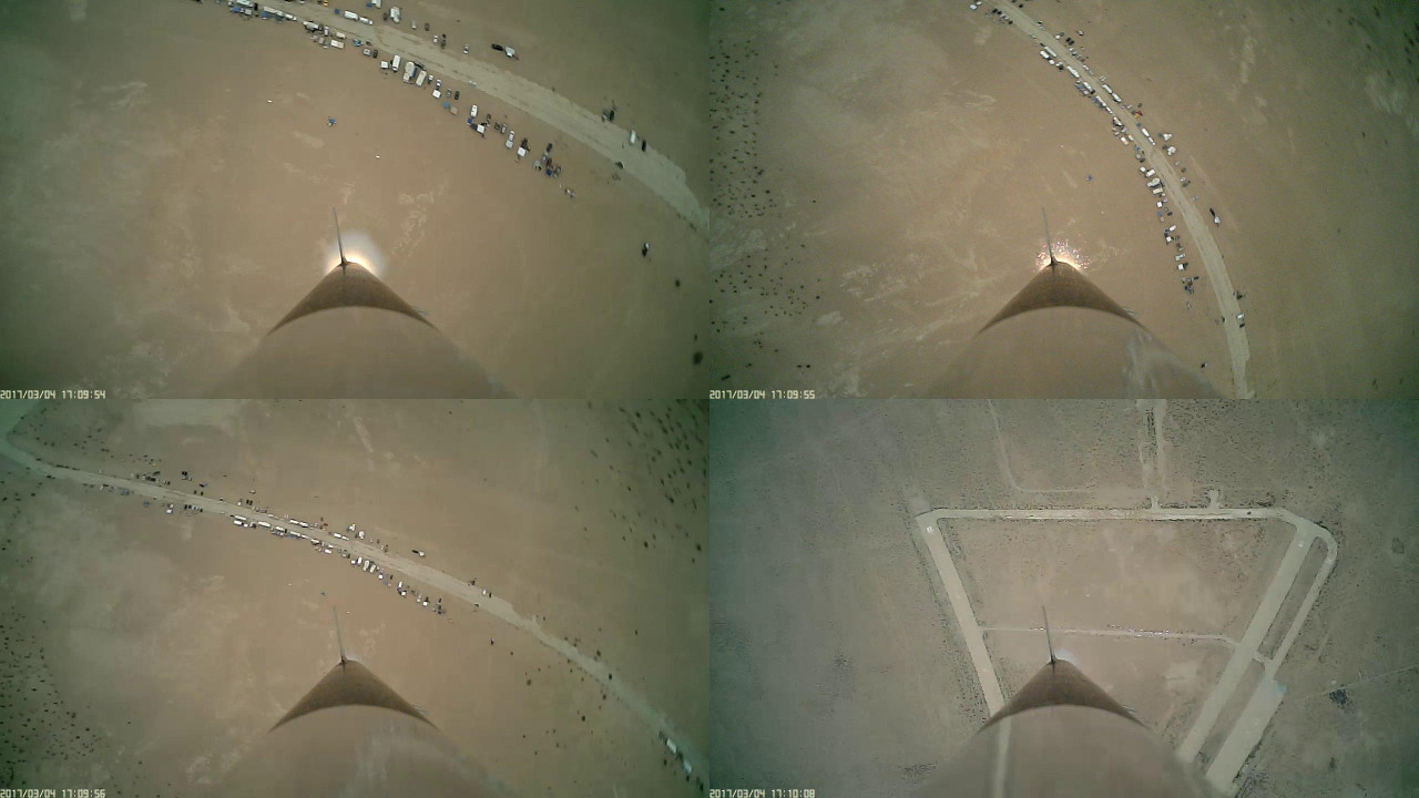 had visual right after apogee all the way to touchdown; GPS signal lost at 2500 feet; recovered just outside fence north of north runway. Good onboard video.