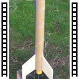 This is a 6.5 ft tall rocket made from two posterboards wound around three 6-inch dia wood embroidery hoops to form a body tube. The main 6-inch body tube is hollow. The Estes D-size engine is ...
