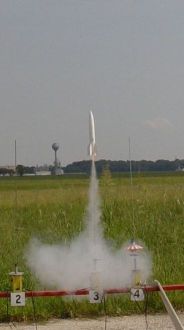 The first flight was at NASA's Johnson Space Center in Houston Texas as part of the 2004 Wacky Wockets / V2 contest. I used the only motor recommended by Das Modell, which was the C6-3. Very nice high boost and twisted quite a bit.