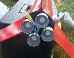 The motors were loaded into the mounts and secured by Rowes Retainers 24mm cones. The finished effect was just what I was looking for.