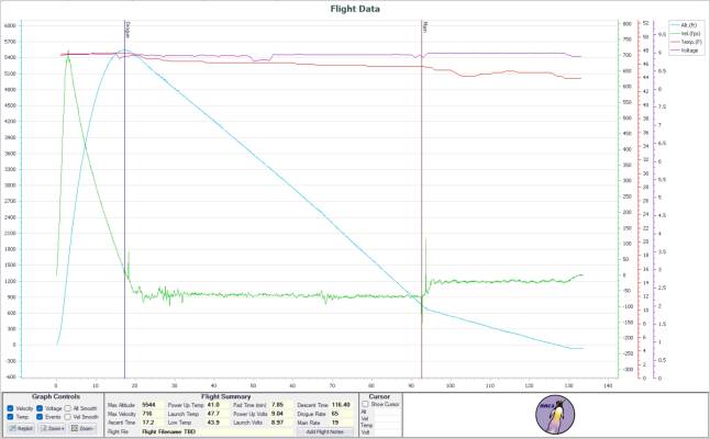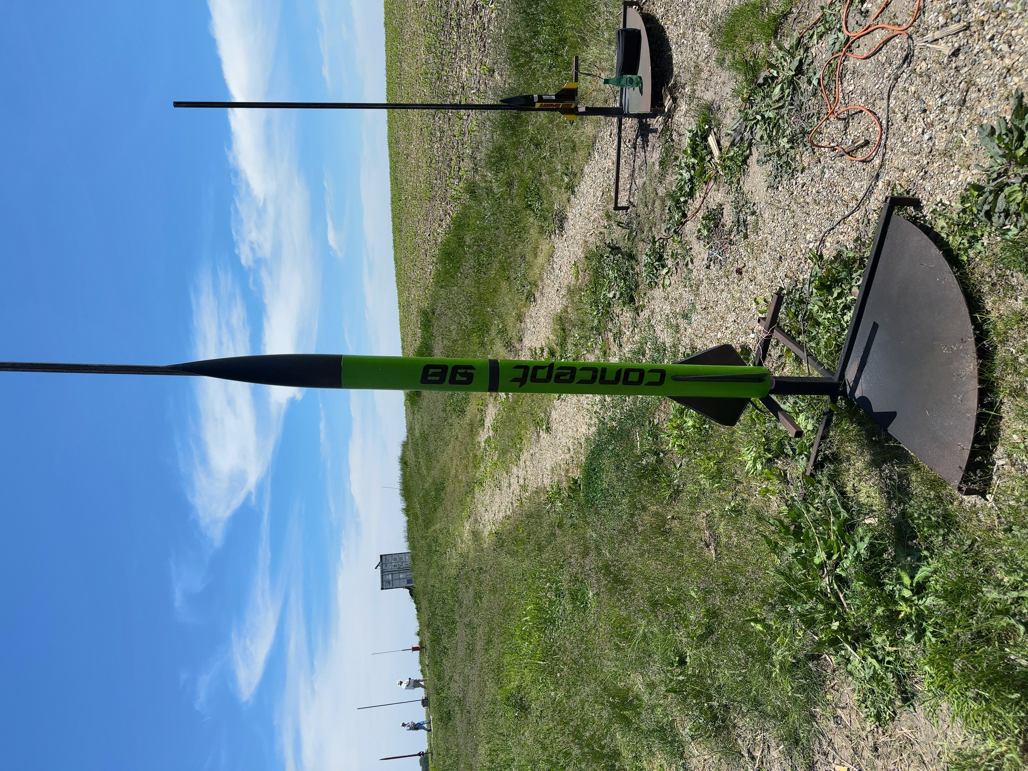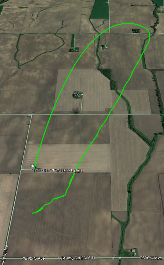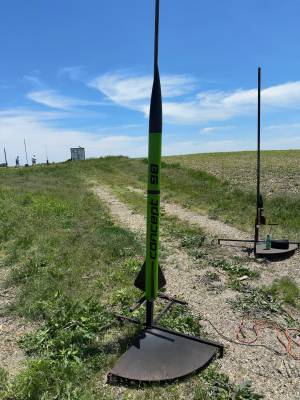 Mini Midwest Power 2023!! The Concept 98 on the Aerotech K550 is an awesome combination -- more than enough thrust off the pad and the white lightning produces plenty of smoke. The weather was nearly perfect, sunny and warm (75f) with light to medium winds. I angled the launch rail slightly into the wind and the rocket arced somewhat into the wind near apogee. Then the ground-level breezes blew the rocket back near the road. The rocket was recovered 1,500' down range and 500' inside the field. Easy-peasy lemon squeezy. I've included a pad pic as well as the RRC3 and Featherweight GPS readouts for your viewing pleasure.