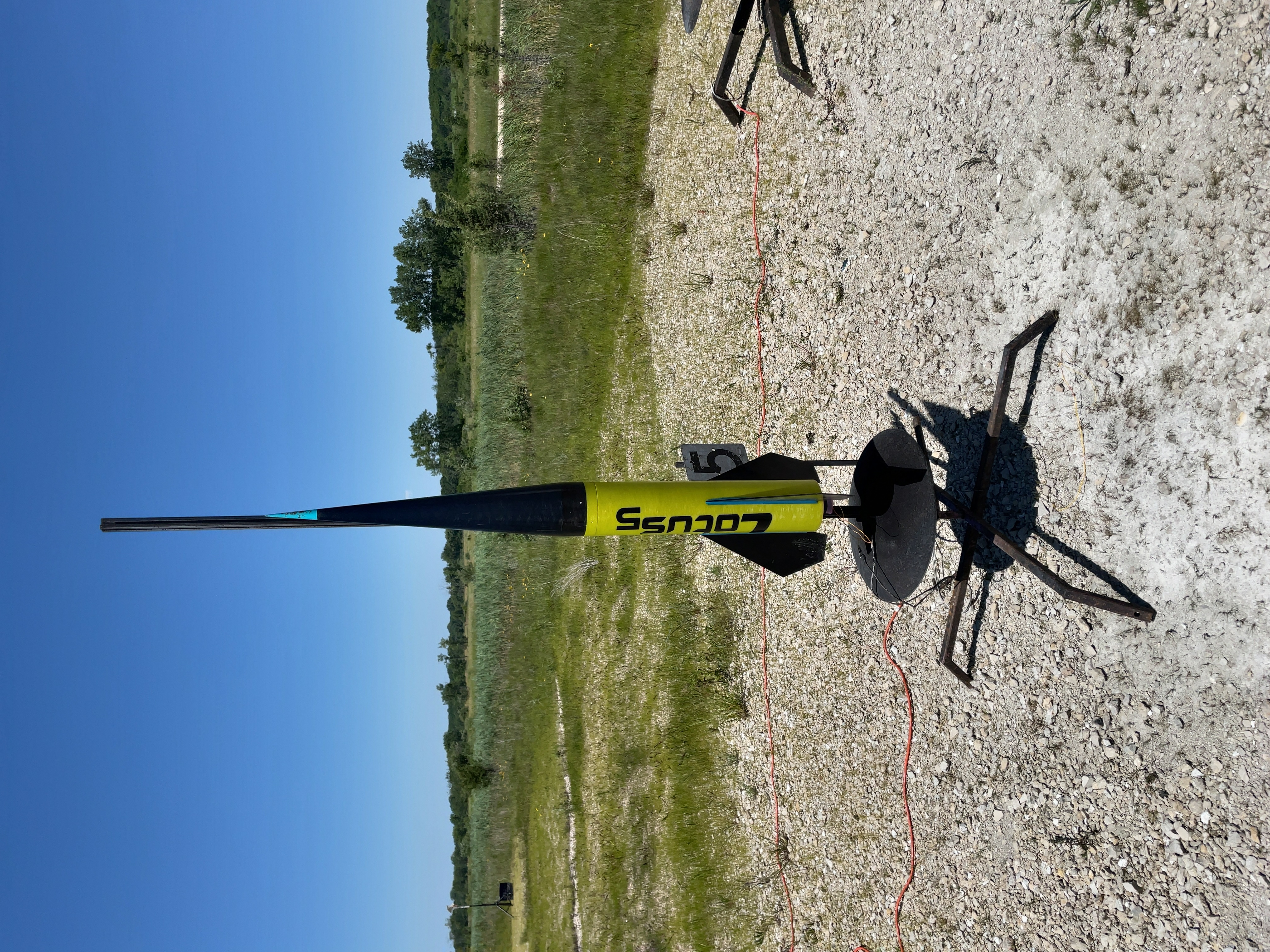 This time the rocket drifted just out of the main field into a tree, coming to rest about 10' above the ground. With the use of a pole the rocket was retrieved without too much trouble.